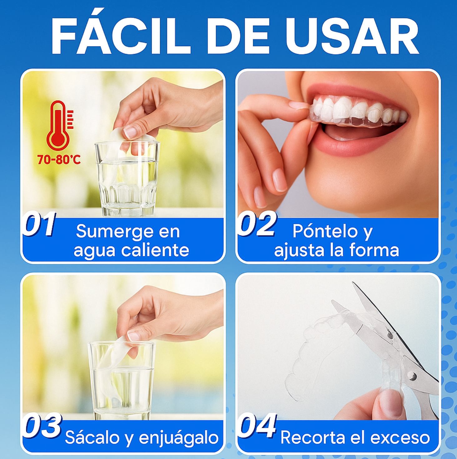✅ Cómodo, discreto y fácil de usar , sin necesidad de dentistas ni aparatos costosos.