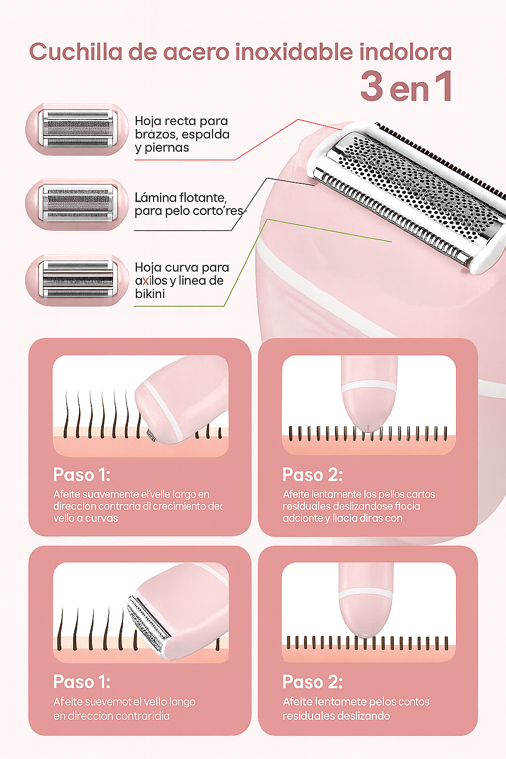 📌 ¿Puedo usarla en todo el cuerpo? Sí, está diseñado para brazos, piernas, axilas, línea del bikini e incluso el rostro.