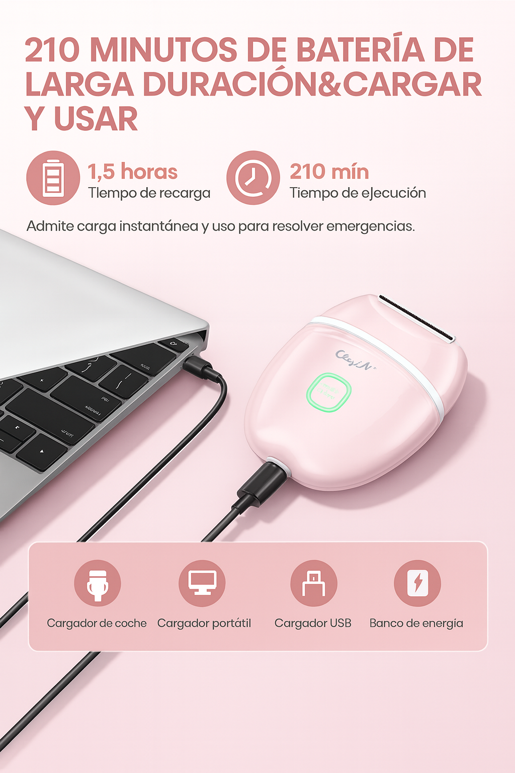 🔋 Batería de larga duración: hasta 210 minutos de uso, ideal para viajes y emergencias.