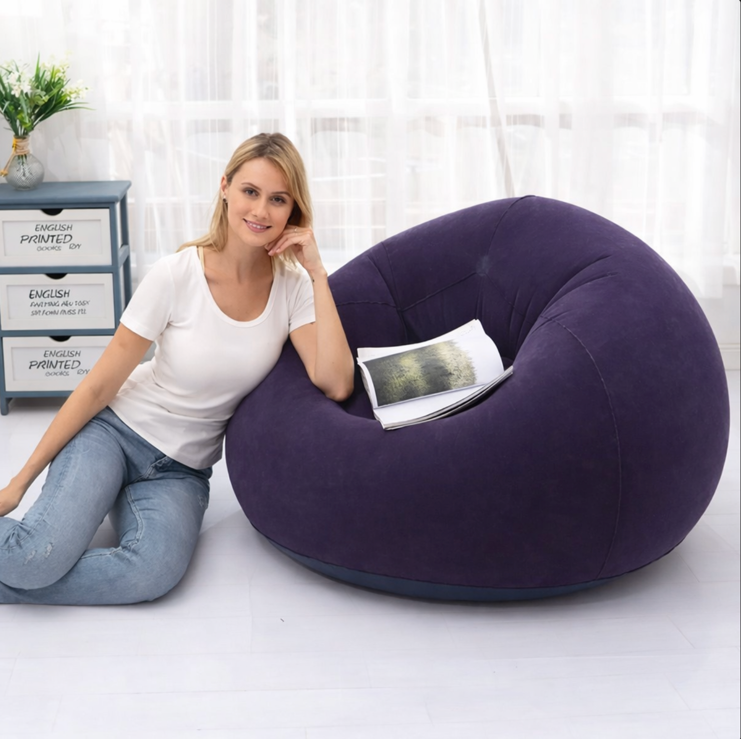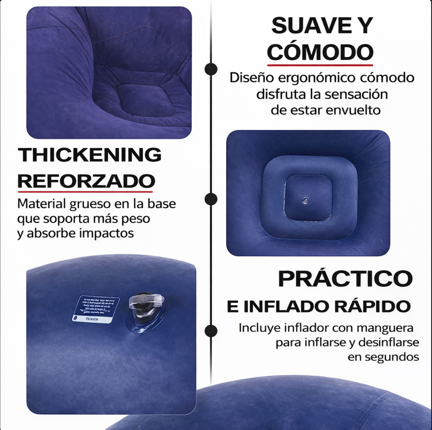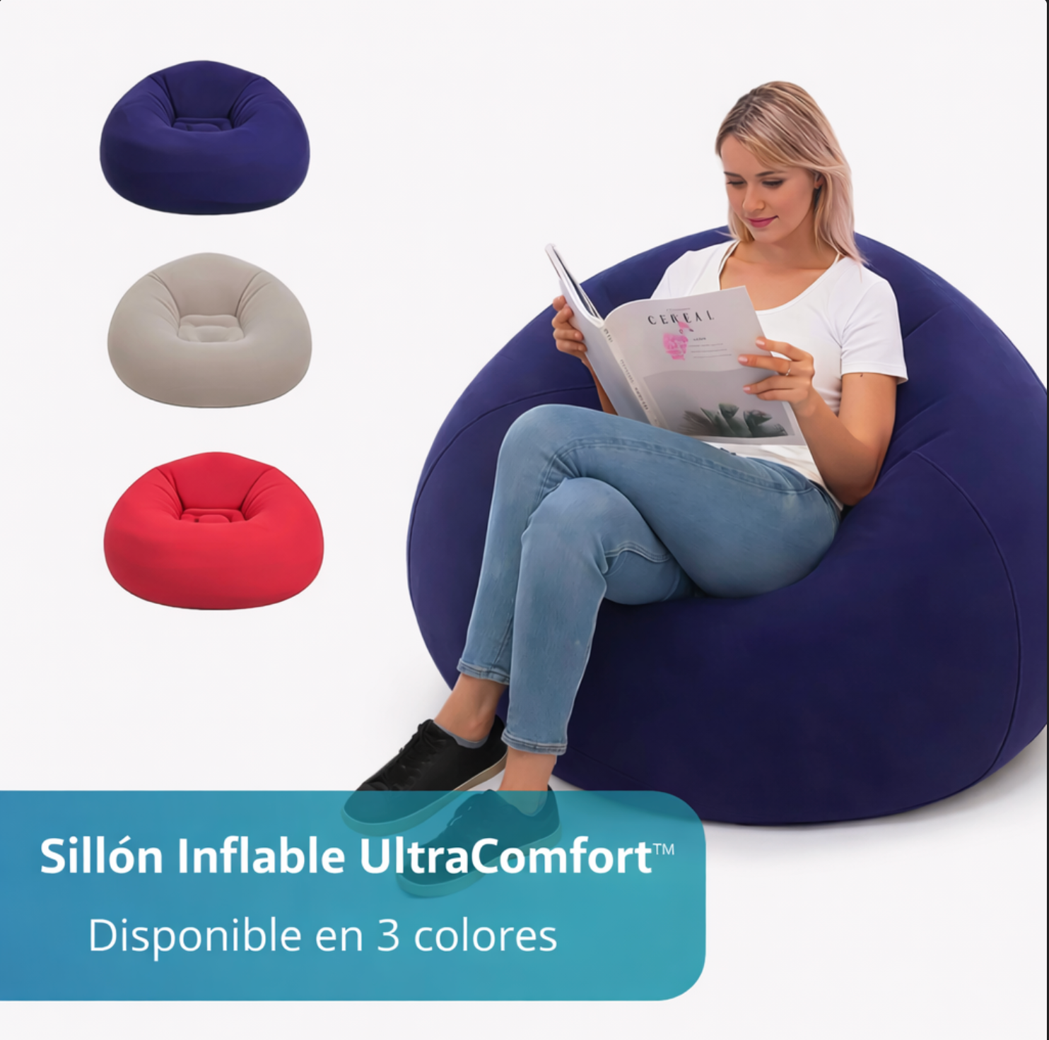 Lo uso para leer y ver series. Es increíblemente cómodo y combina perfecto con mi sala. Se infla rápido y no pierde aire. Mis amigas ya quieren uno.